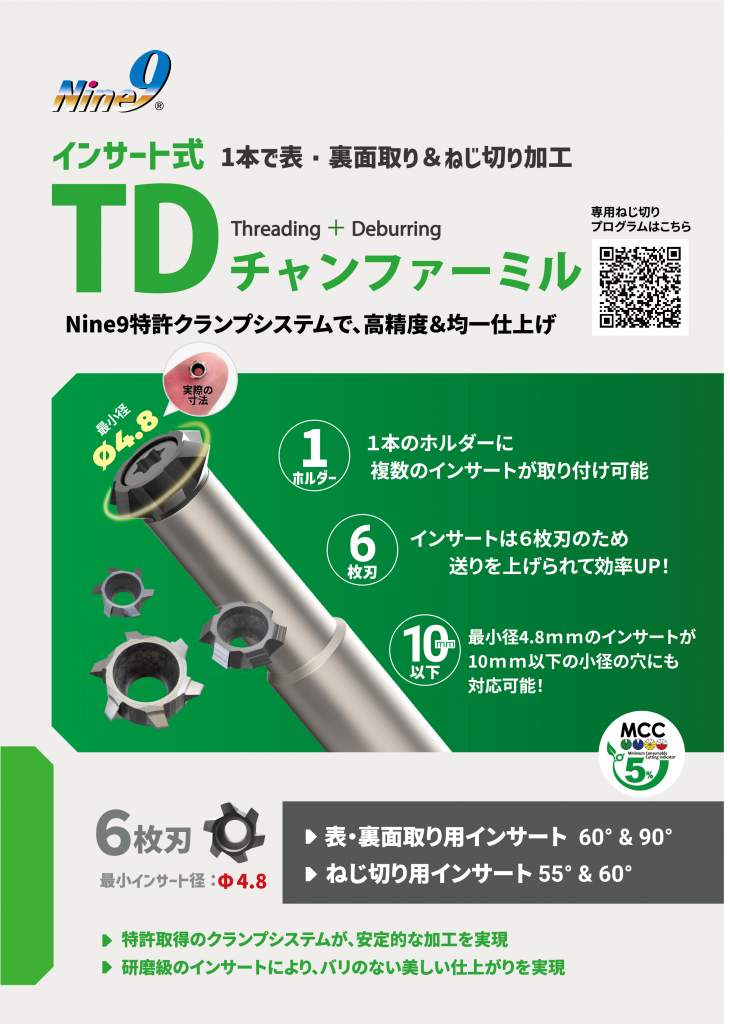 Nine9社製 インサート式面取りカッター TDチャンファーミルのご紹介です