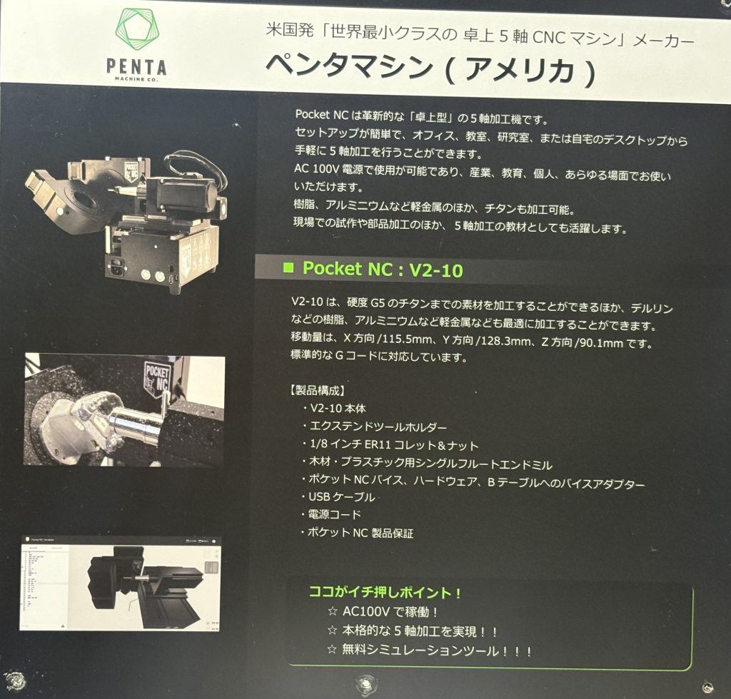 PENTA machine社の卓上5軸加工機 POCKET NCです。
